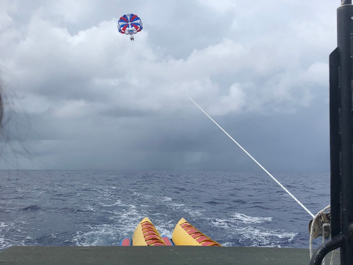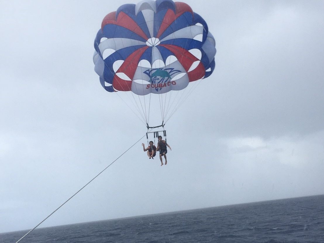 盛りだくさんのコース、グアムを満喫しました。イルカをみたあと、嵐がやってきて、バナナボートは拷問でしたが、なんとか雲の切れ目でパラセイリングができました。ツアーのせいでは決してありませんが、ものすごく寒かったです。