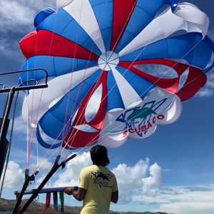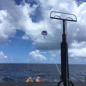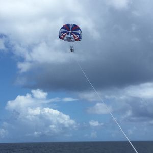 次に移動してボートに乗船。他に4人が合流し、パラセーリング。お相撲さんの回しのようなハーネスをつけて、パラシュートに固定し飛びます。空中散歩をするような感じでとっても楽しかったです。欲を言えば飛んでいるときの写真がほしかった。