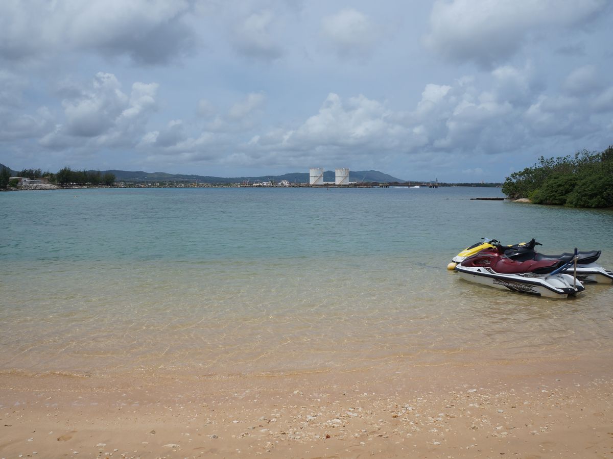 まずはホテルからジェットスキーをする入り江へ。途中で運転をチェンジするかと聞かれたのでyesと返事。主人が運転でその後ろに私。初心者の主人につかまって乗っているのがちょっと不安。海の上で前後入れ替わり。私はあまりスピードを出せなかったけどそれなりに楽しめた。他に人はいなかったので気を使うこともなかった。日本なら免許がないと運転できないけど、グアムではできます。