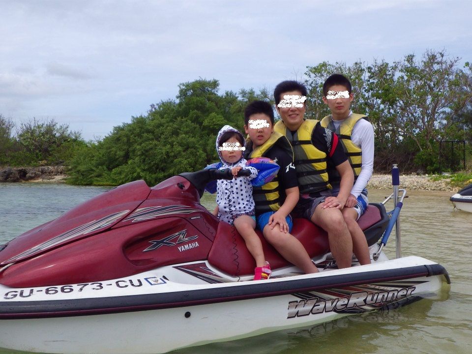 戻ると、今度はジェットスキー。二人乗りしかないのかな・・・と心配していましたが、三人乗りジェットがあり、パパ&二人の息子達が一緒に乗ることが出来ました。