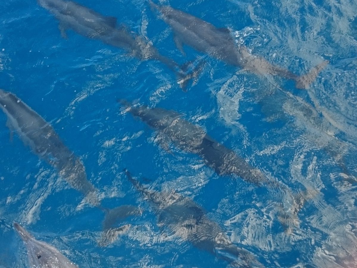 こんなにいるの?!と思う程のイルカを沢山見ることが出来ました!とっても、可愛かったです。その後少し移動して、シュノーケリングを楽しみました。時間が余ったからと、2度目のイルカウォッチングへ!その後昼食を食べてアクアウォーク!岸から耳抜きしながら歩いて進みます。魚に餌をあげました。綺麗な魚はいませんでしたが、インストラクターの方のパフォーマンスが素敵でした!これは体験してからのお楽しみで!