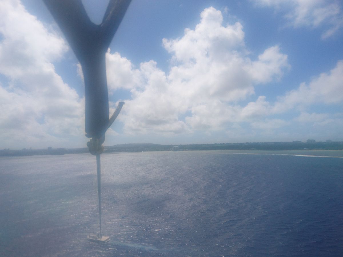 空からはあまり高さも感じないのか、一番上の高さでも怖くなることはなく、風も穏やかに吹いていて、グアムの青い空と海が一度に感じられた瞬間でした。
