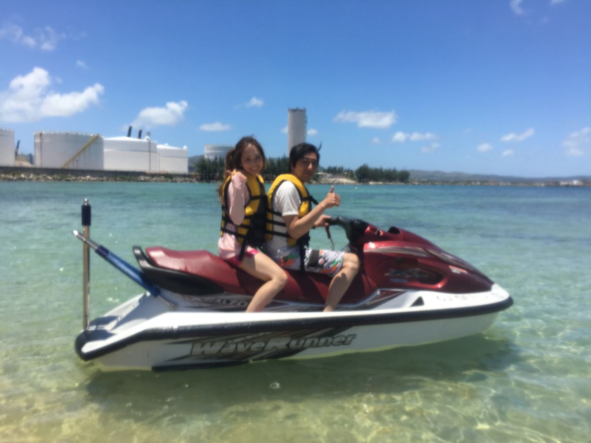 ジェットスキーは恋人岬付近まで行って帰ってくるプランだった為、往復で友人と交代で運転という感じでした。一人15分程度は運転していたと思います。ガイドの方の運転について運転するという形でした。ジェットスキー運転は初めてだった為、ハンドルの操作などが慣れるまでは大変でしたが、楽しむことが出来ました。ガイドさんも皆さん親切で良くして頂きました。