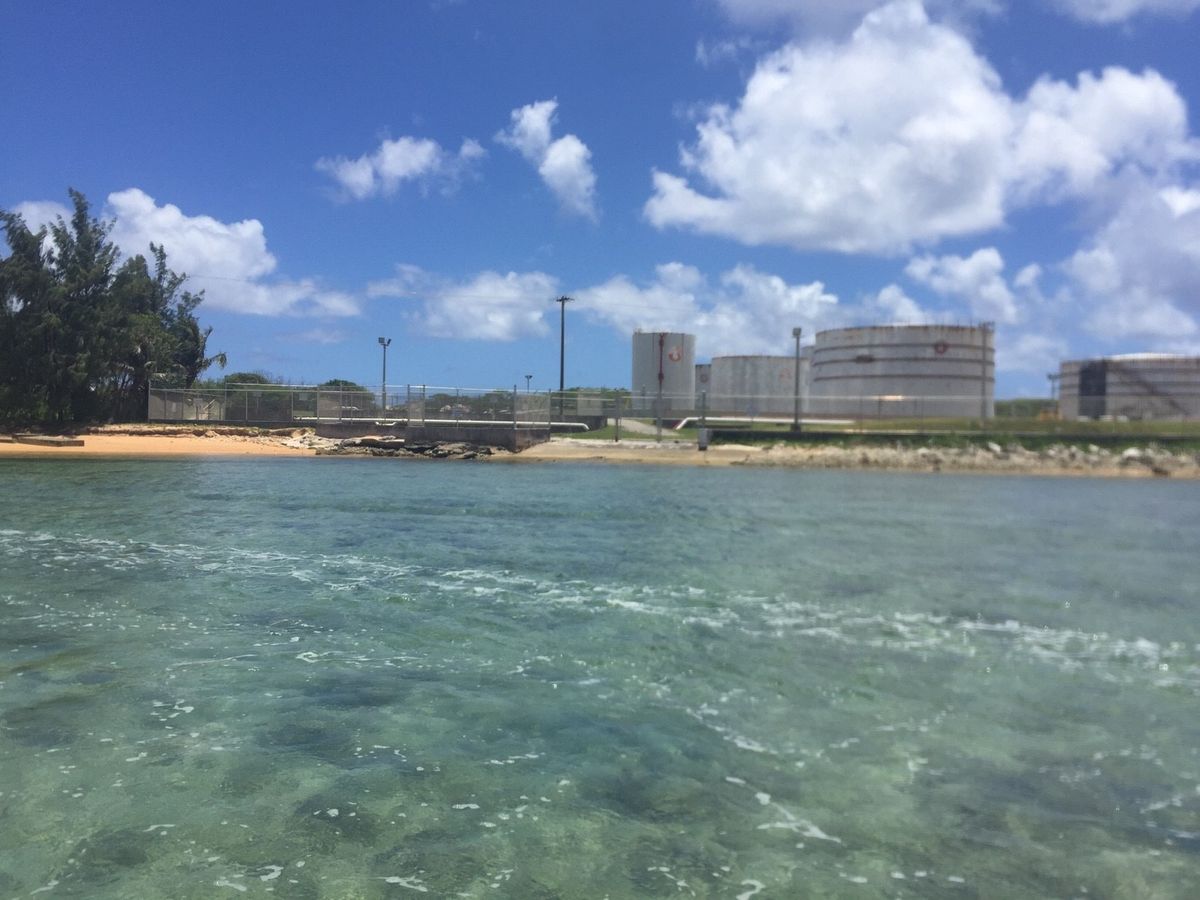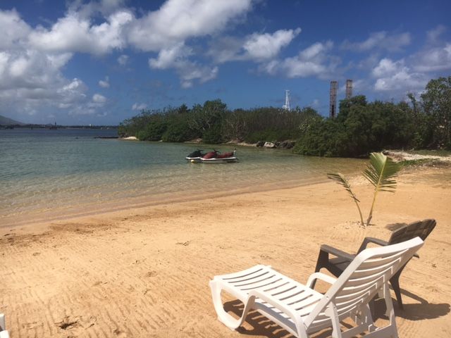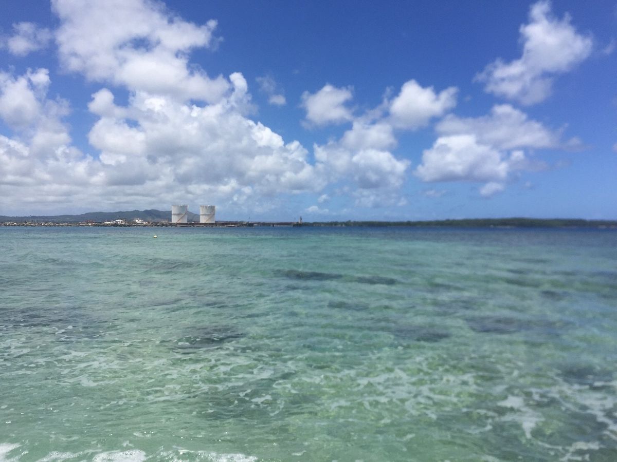 船着場に戻ると、先程の車に乗ってまたまたしばらく無言で走ります。町外れの『グアムにこんな場所があったの?』と思う、観光地とは対照的な、工業地帯・・・。小さな浜辺に到着。