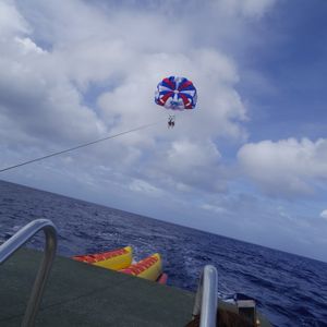 夫婦と6才の子供3人で参加しました。港に着くまでに結構時間がかかった以外はとってもよかったです。まず船に乗りバナナボートとパラセーリングをしました。バナナボートは8才からなので子供は船で待っていましたが、パラセーリングは6才から可能です。バナナボートは最後は結構スピードがでてスリリングで楽しかったです。パラセーリングは二人ずつしか出来ないと思っていたのですが、3人でできました。6才の子供は怖がるかと思いましたがとても楽しかったと言っていました。