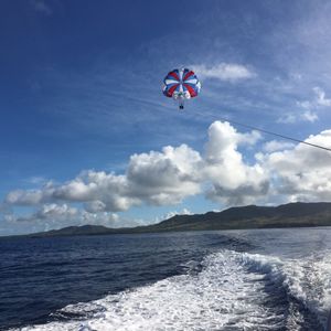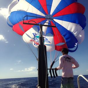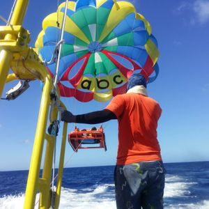 初めてのパラセーリングでしたが、とても気持ちよかったです!途中で海にも落とされたり笑