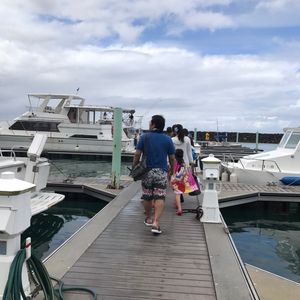1度港に帰り、今度は違う船と、違うメンバーでイルカウォッチングに行きました。たくさんのイルカが見れて感動しました。もし見れなかったらもう一度チャレンジできるけど、お弁当は持ってきてねと茶目っ気たっぷりに言われていたけど、見れてよかったです。シュノーケリングは子供が初めてではしごに捕まってしか出来なかったですが綺麗な魚が見れました。浮き輪はなかったのでライフジャケットだけでは恐くて泳げない子供に浮き輪をもってくればよかったと思いました。お弁当は和風でよかったです。子供は滑り台は海に落ちるので怖がってやらなかったですが、トランポリンは喜んでいました。スタッフもみな優しくて、貴重な体験も出来たので参加してよかったです。