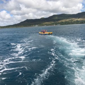 また、参加した方々がみんな優しい人達ばかりで、自分たちの番がくると、動画撮りましょうか?と声をかけてくれたり、みんなが船から手を振ってくれて、戻ってきたら「おかえりー!」と言ってむかえてくれるので、心から楽しめました。また、おまけのバナナボートも、迫力があって、すごく楽しかったです!参加してよかった!また絶対に参加します!