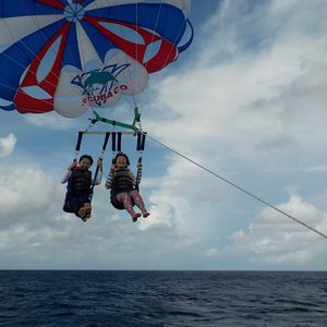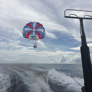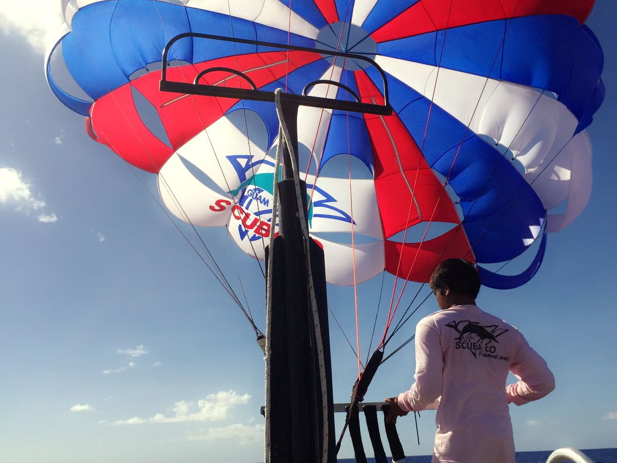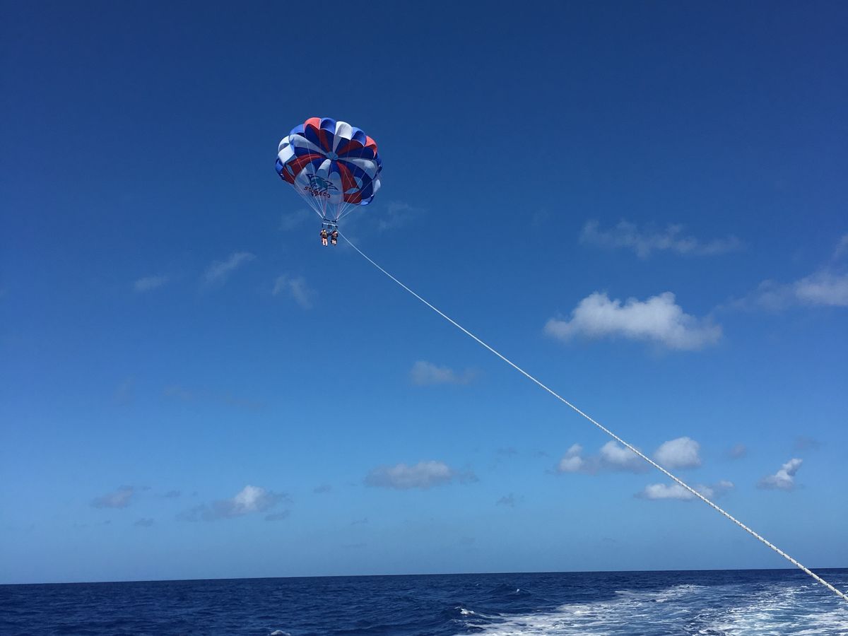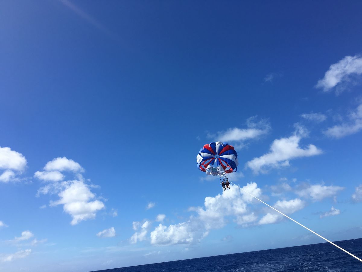 次はパラセーリングです。パラセーリングは、パラセーリング場所に行くまでが波が高く酔ってしまいました。しかし、実際にパラセーリング中はそれを忘れるくらいキレイな景色が見れて大満足でした!!!!ただ、自分が想像していたよりも高く上がるので高所恐怖症の方には厳しいかもしれないです、、