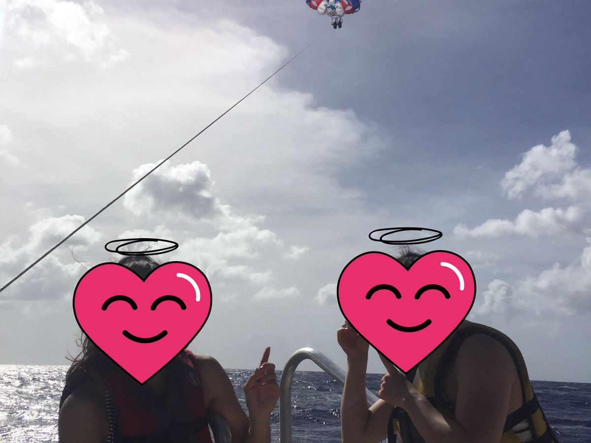 パラセーリングは一緒に若い女の子の4人組と行きました。にこちゃんのパラがとても可愛くて、それだけでテンションが上がりました。