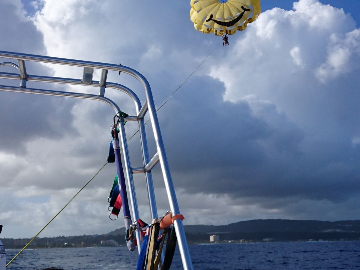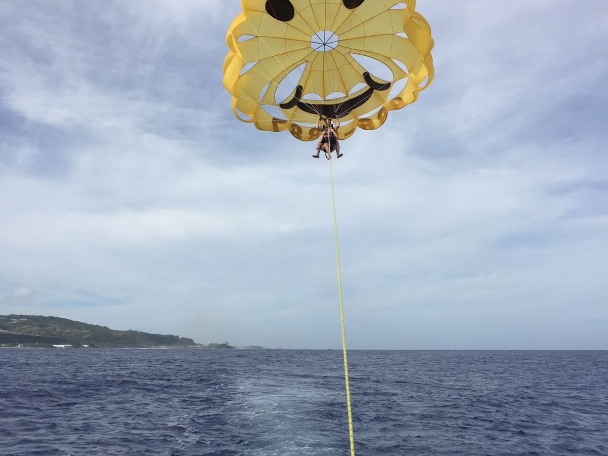 やっぱり惧グアムに行くならマリンスポーツがしたい!ということになり色々出来るこのサイトのオプションをえらびました!私たちが体験したのはフライバナナとパラセーリング!!!まずはフライバナナから体験しました。初めは余裕だと思っていて、こんなもんかー。と思っていましたが(笑)、どんどんスピードが上がってきて、ボートが浮き上がったときにはほんとに腕が大変なことになりました!!!(笑)海に落ちましたがすごくエキサイティングで楽しかったです!!!