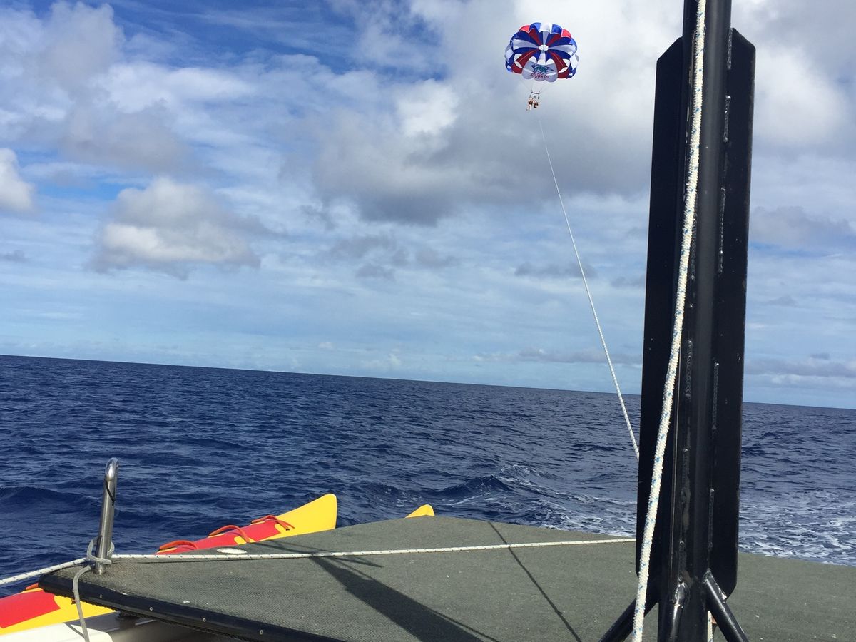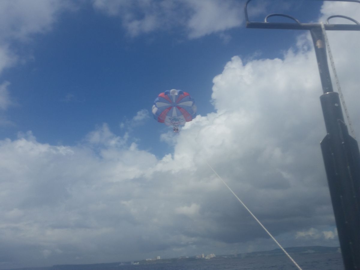 ご参加ありがとうございました。この日の パラセール サイパンの 左上空に 熱帯低気圧が出きていて うねりがありました。ぜひ 船酔いのお薬は お勧めです。楽しんで頂き嬉しく思います。またのご参加 スタッフ一同 心よりお待ち申し上げております。