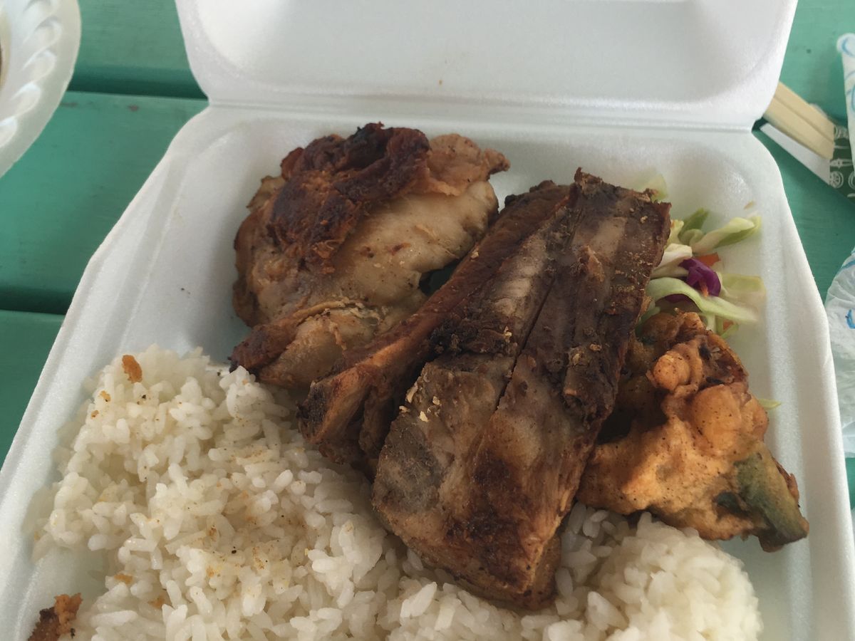 昼食はチャモロバーベキューのランチプレートでどれも美味しかったです。