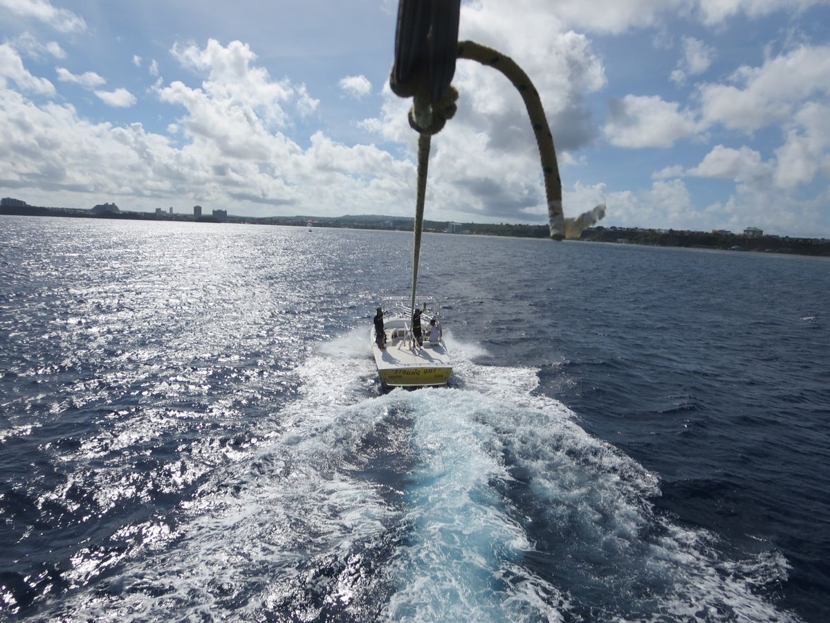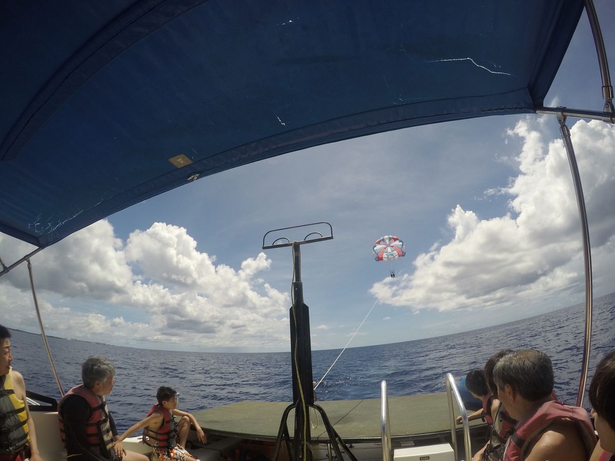 初めてのグアムで初めてのマリンスポーツでした!ホテルまでの迎えが予定より10分くらい遅れたので不安でしたが、時間にルーズなのが当たり前らしいので仕方ないです。それから1時間くらいワゴン車で移動しましたが、すごい揺れました。まずバナナボートですが、ただボートに引っ張られてるだけな感じでした…もう少しスリルがあってもよかったなと思いました。初めてだったのでなんとも言えないですが…次にパラセーリングですが、最後の順番だったんですが、なぜか忘れられて片付けを始められました。まだやってないことを告げると、とても面倒くさそうに準備をしてくれました。その対応が嫌でしたが、パラセーリングは普通によかったです。