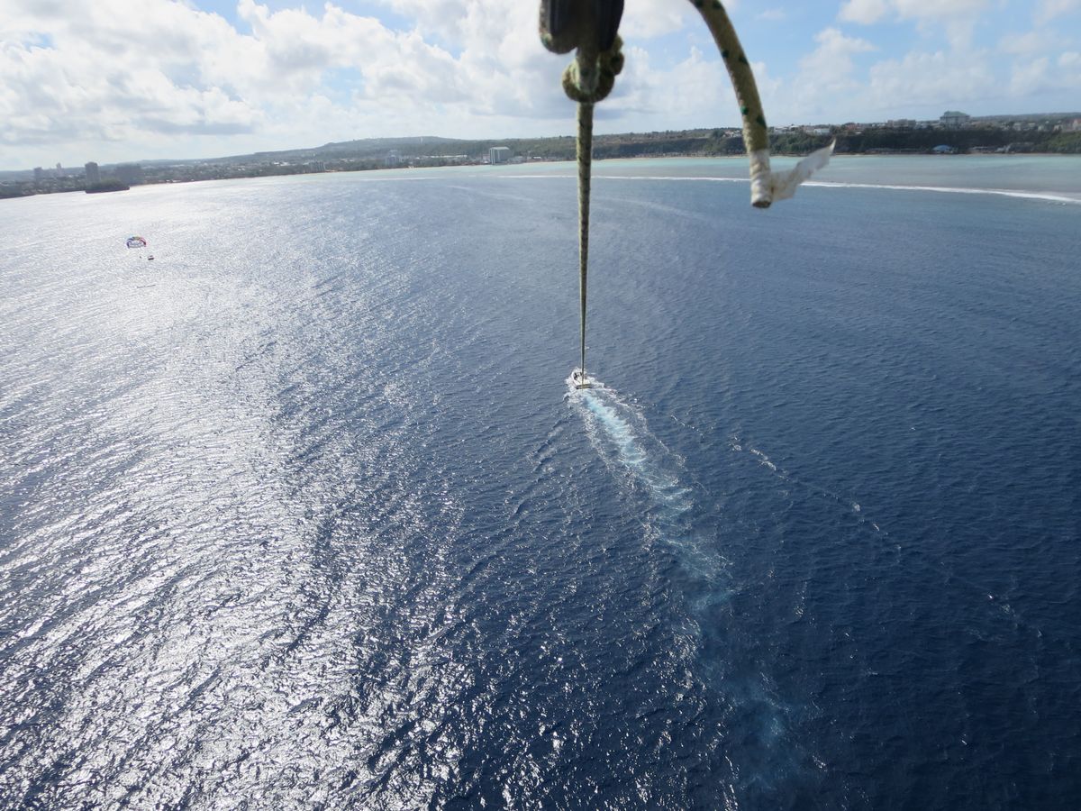 パラセイリングは二人で一緒に飛ぶことができたので、興奮を分かち合うことができ大満足です。非常に高い所まで飛べるのでグアムの景色が一望でき、気持ちが良かったです。また、インストラクターの牽引のテクニックが凄く、海に落ちるギリギリまで高度を下げ足が海に着くかと思ったら、また一気に高いところへひとっ飛び!沢山ドキドキさせてもらえました。写真を見てもらえば分かるようにニコチャンマークのパラセイリングなので、非常にフォトジェニックで、友人に自慢できるような写真が撮れます。