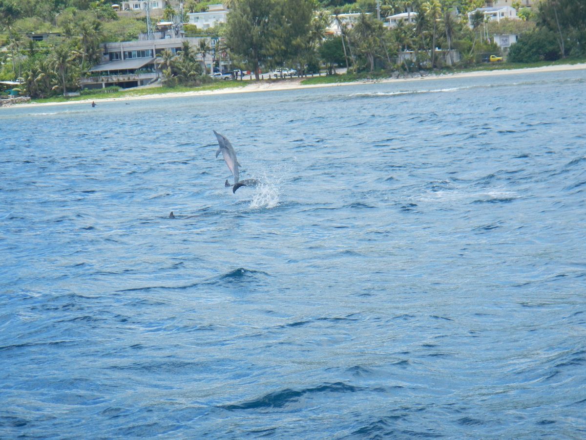 目的の場所に向かう際になんとイルカを見ることができ、時間の関係でイルカウォッチングを諦めていたわたしたちは大興奮でした。