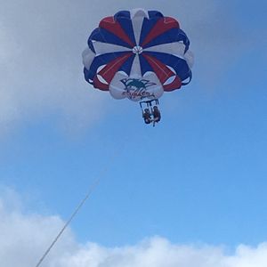 バナナボートで沖の方に向かっているときにイルカが見れてラッキーでした(^_^)バナナボートはすごく楽しかったのですが、パラセイリングは他の方を待っているときに船酔いをしてしまいすごく大変でした(>_<)