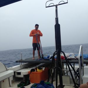 午前中はとても楽しく初ダイビングに参加。ここでは日本のガイドさんもいてグアムの方も和気藹々と楽しく過ごしました。ご飯を食べていざ後半に向けて船着き場に向かったのですが。。。途中から凄い量の雨が降ってきました。よくある通り雨ではなく聞くところ台風が近い事による天気の乱れとの事でした。でも止むはずって事で雨の中沖まで出ました。ポイントであろう場所についてから約10分、「中止でーす」ごめんなさいとの事で荒波のなか船は引き返しバナナとパラセは実施する事なく帰還しました。でもちゃんと中止分の返金を受ける事が出来たのでただで船に乗れたって思えば悪くはなかったかなと思います。要所要所に日本のスタッフさんがいるので全く不安もなく楽しめます。