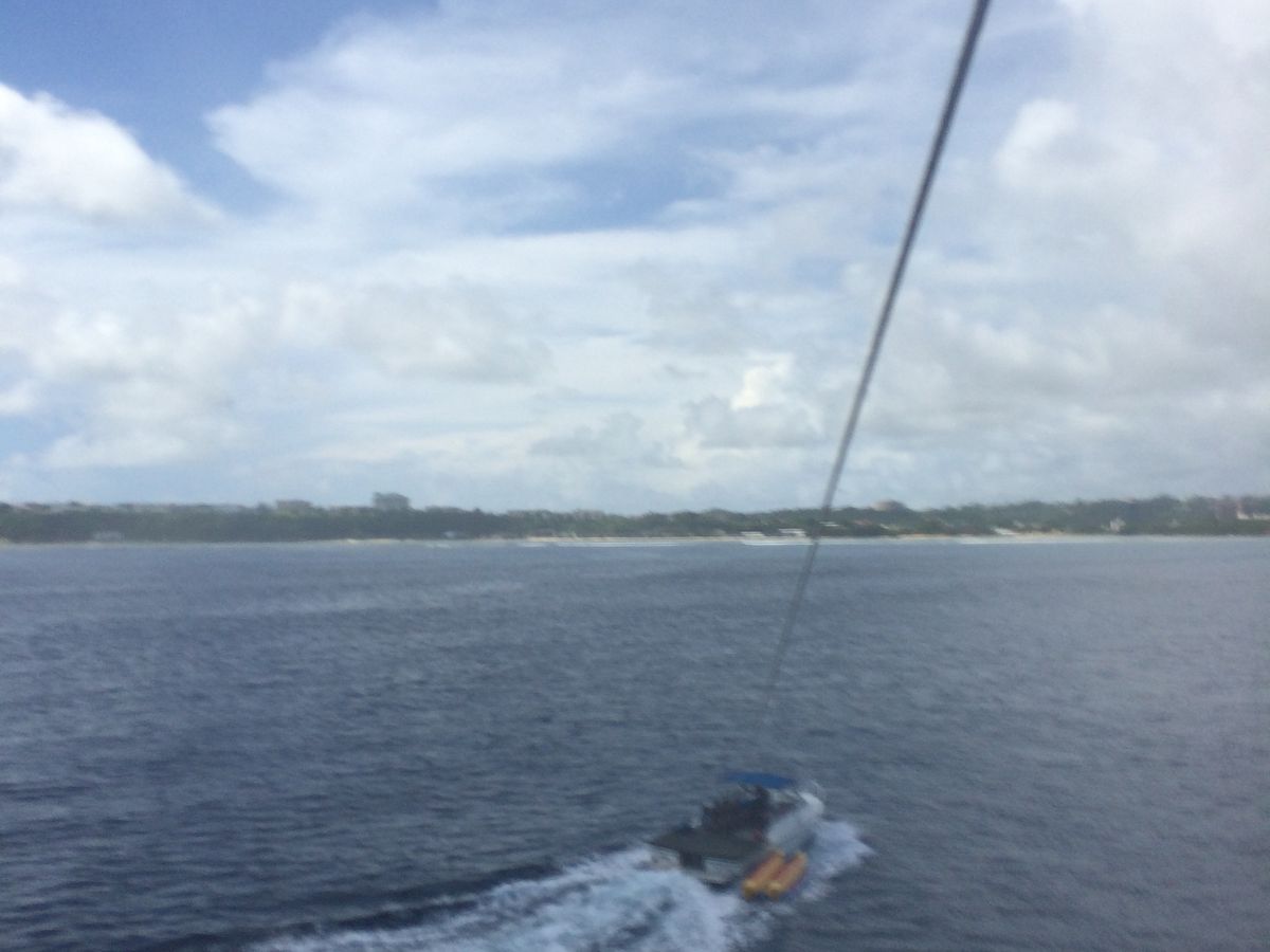 参加者はたまたまかも知れませんが日本人しかおらず、バナナボートに急に乗せられても、周りの方と会話が出来ました。10分くらいバナナボートに乗ったあとに沖合でパラセイリングがスタート。2人1組になり交代で13人が挑戦しました。3人で参加されたグループは1人が2回乗っていたので少し得かも⁉︎笑