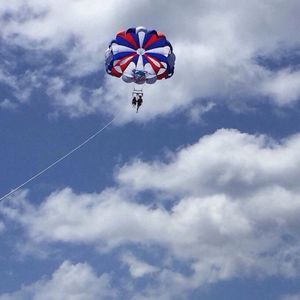 めちゃくちゃきれいな海をバナナボートで走りパラシュートで上空から眺めることができめちゃくちゃ気持ちよかったです。