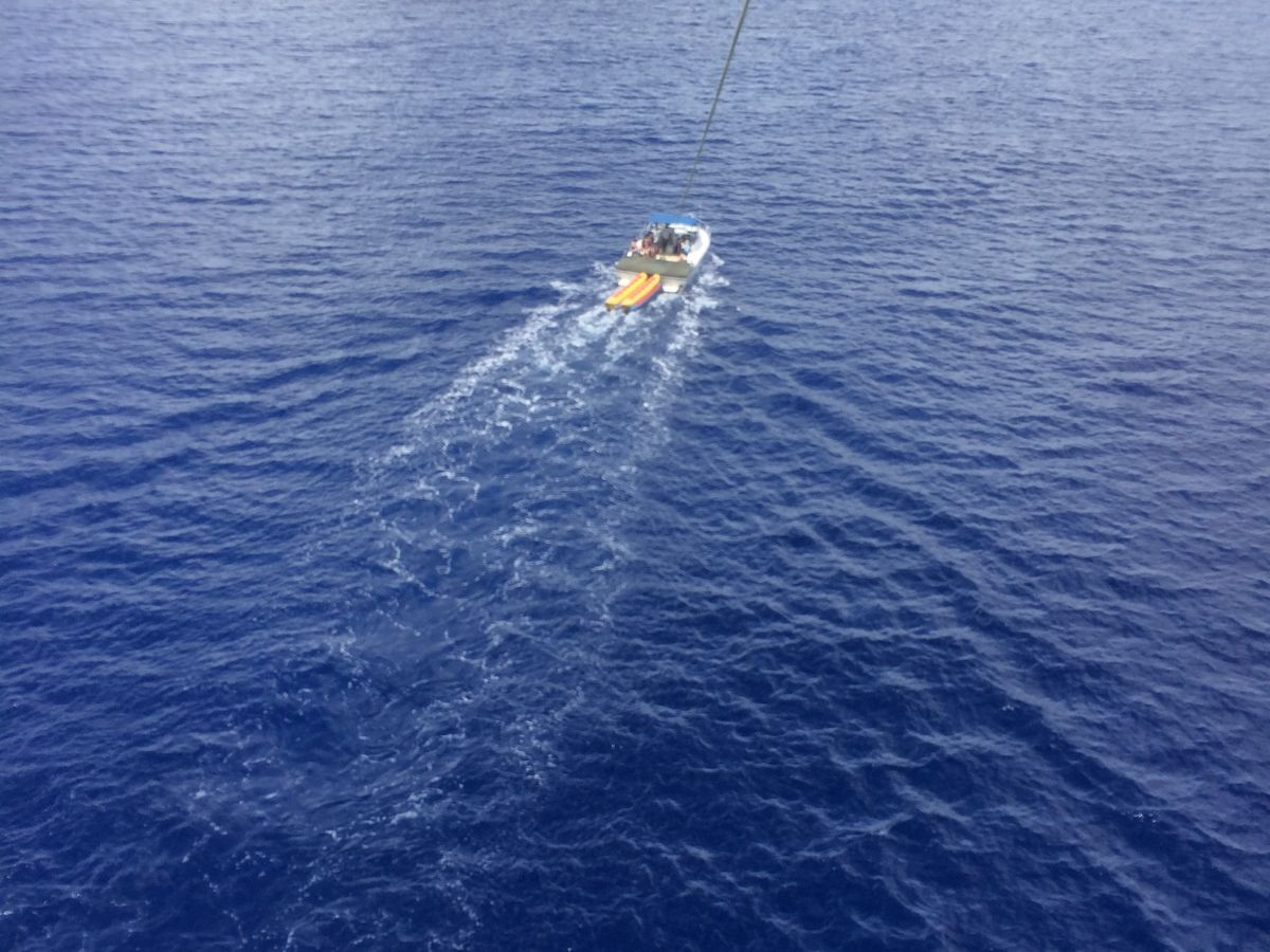 パラセーリングは実施したものの、行くまでの船、待機中の船が大変