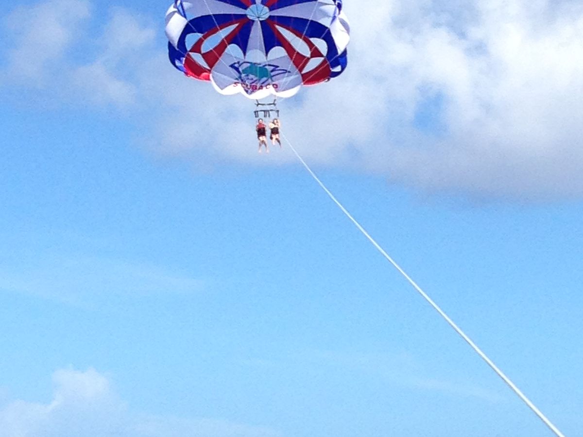 まずババナボートで海に落とされ楽しませてもらい、いざ空中散歩、ボートが小さく見えるほど上空へ。真っ青な海を見下ろし爽やかな風を感じ、あっという間の時間でしたが最高に気持ち良かった!!!又是非参加したいです。スタッフの皆さんありがとうございました。