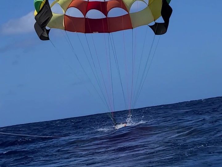 写真はパラーセリング中に海に落とされた瞬間