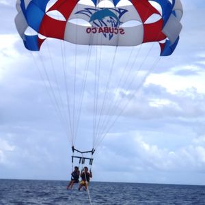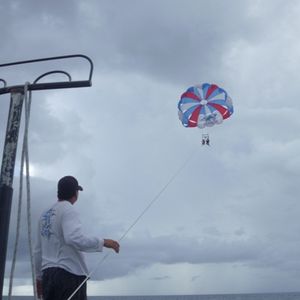 パラセイリングは数分間でしたが上空まで飛んで2人乗りのシートで彼氏と同じ景色を見ることが出来たので感動を共有出来良い思い出になりました。また、悪天候でモーターボートが大荒れだったので私的にはスリル満点で3つ目のアクティビティの様な感覚で得した気分でしたが、他の方たちは船酔いしておられる方がかなりいました。