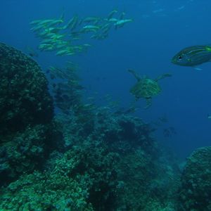 初めてのダイビングでしたが海底での魚への餌やりは目の前まで餌を食べにくる魚が見れて感動でした。海底のサンゴや熱帯魚のようなカラフルな魚が沢山目の前で見れて夢のような素敵な時間でした。