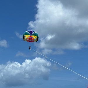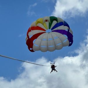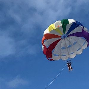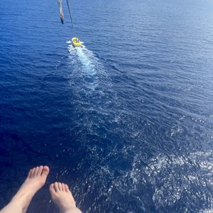 パラセーリングは強風だったからか縦並びでしたが、高さや海のきれいさ、景色を堪能できました。意外と揺れないし、怖くなかったですし、あっという間でした!