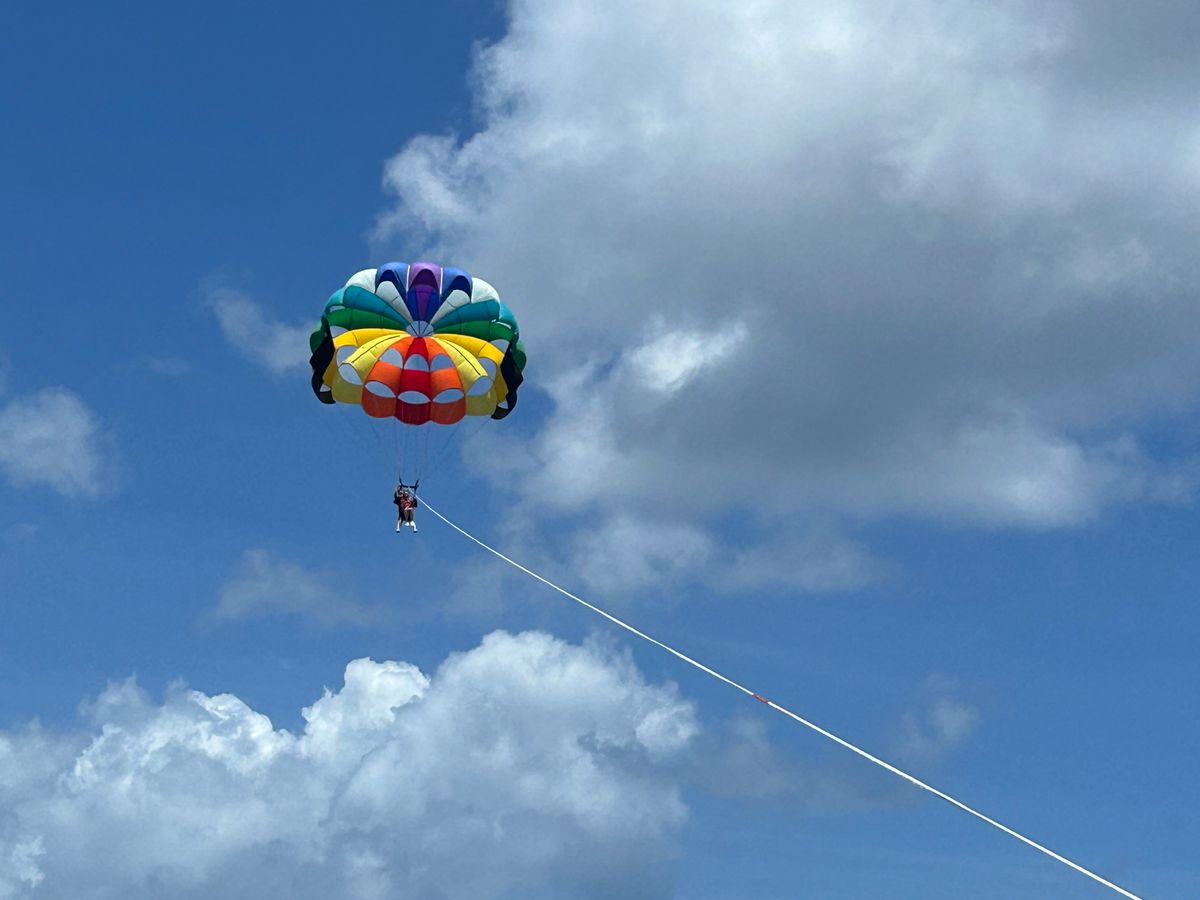 車の送迎からボート移動、パラセーリングで飛び立つまで、すべてスムーズでとても楽しめました!パラセーリングはロープで前後に座るタイプで、スリルがあり、カップルにお勧めです。