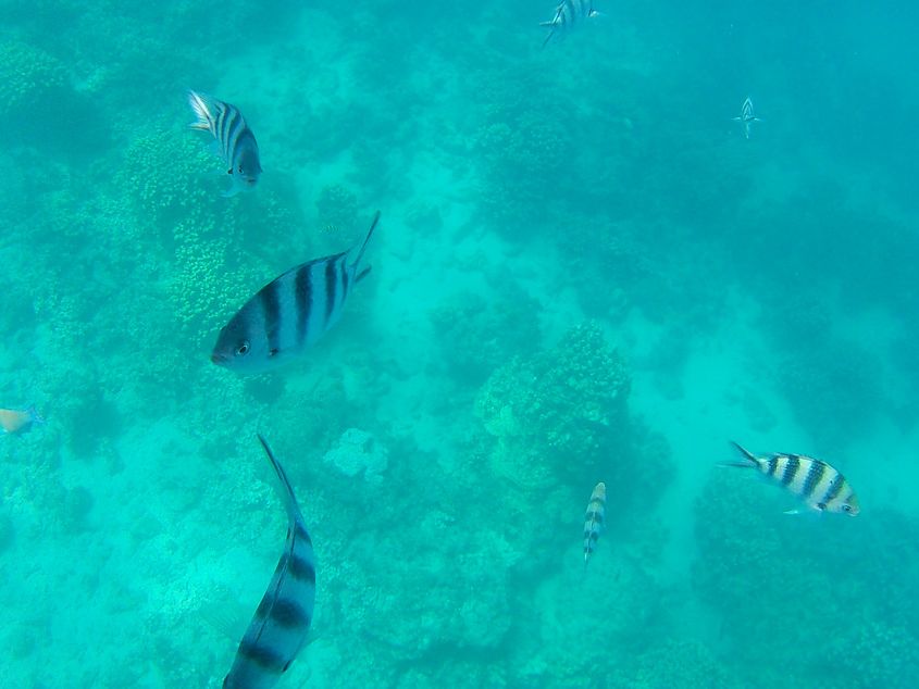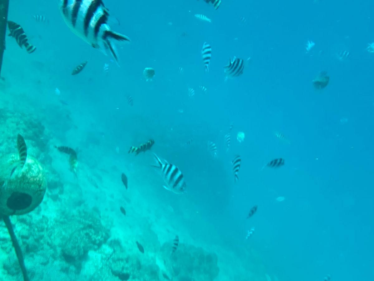 シュノーケルもできますが魚はあまりいません。一部の岩場にはたくさんいたので探せばいます。