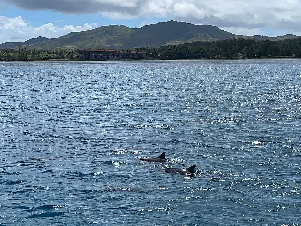 【イルカウォッチング】イルカに会えないこともあるそうですが、運良くたくさんのイルカたちに出会えました!ウミガメも泳いでいましたよ。よく晴れた日だったので、日焼け止めクリームを塗っていたにも関わらず、ものすごく日焼けしました。クルーザーでの移動ですが、トイレ付きでした。