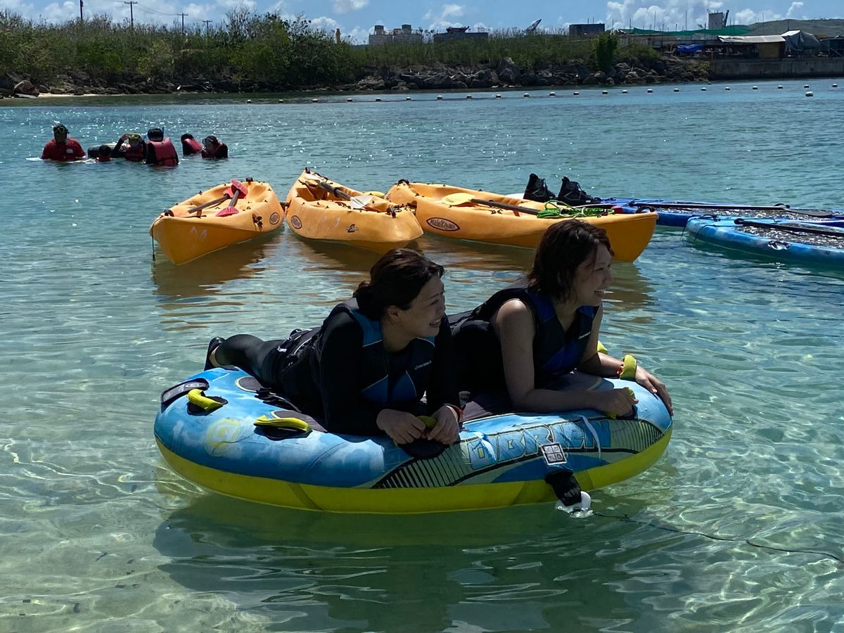 パラセーリング参加後、場所を移動してバナナボート、さらに無料でシュノーケルやカヤック、SUPも楽しめました。