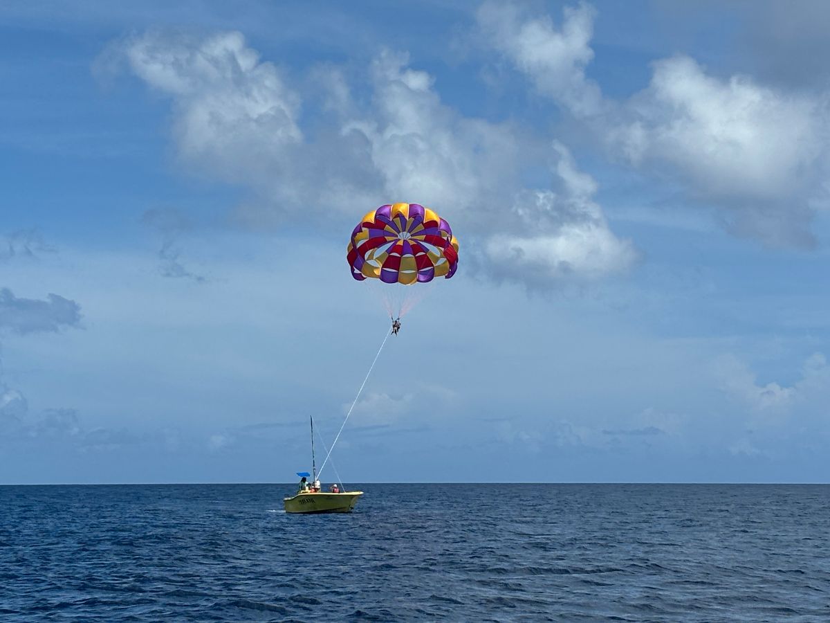 【パラセーリング】人生初のパラセーリングでした!とても気持ちよかったです。揺れることもあり、その際は怖かったです。小さなボートで、自分たち二人だけの乗客でした。いきなり飛び立ちます!英語が分かれば、コミュニケーションもとれて、いつぐらいに飛び立つのか分かったのかもしれません…。