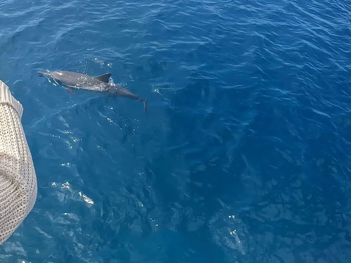 イルカの群れを見ることができました。満足です。妻も喜んでいました。ボートはトイレ付きです。天気も良くて、ほとんど揺れもありませんでした。海面近くを泳ぐウミガメもうっすら見れました。