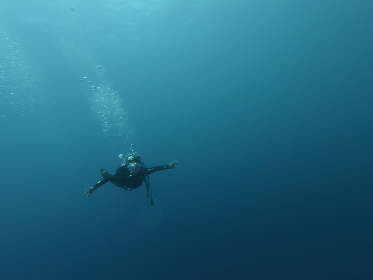 2本目はボートエントリーで、足のつかない場所でのダイビングでしたが、1本目のおかげでパニックにもならず落ち着いて楽しめました。結果的にウミガメは見れませんでしたが、かなり深いところまでダイビングをしたという経験がとても楽しかったです!