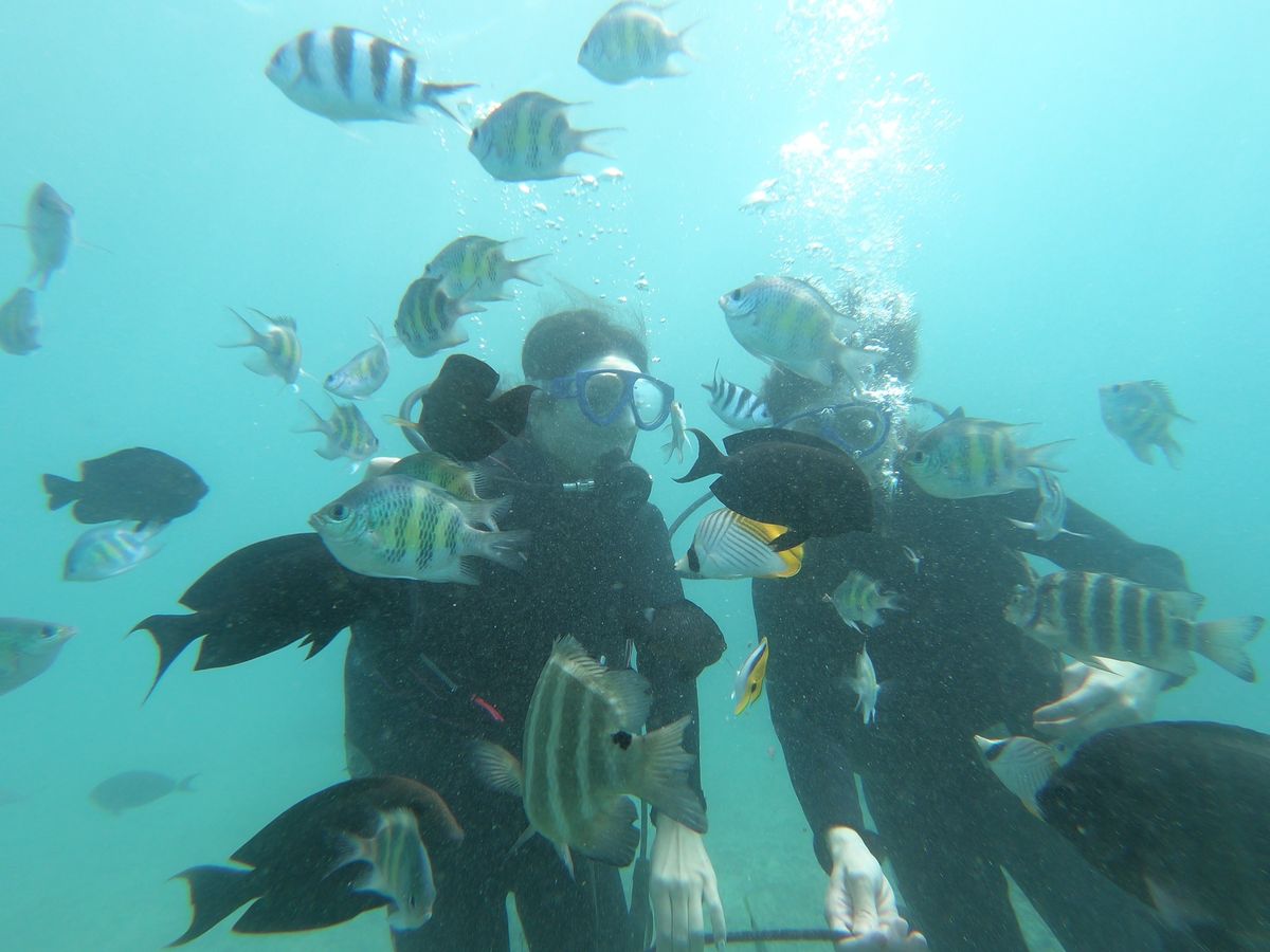 海の中でお魚に餌をあげたりとても貴重な体験でした。