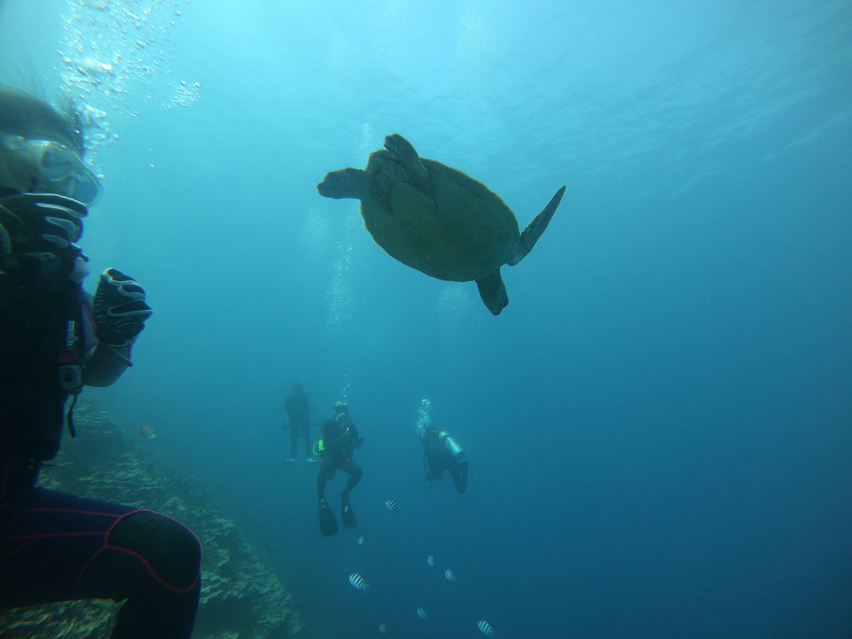 初めてダイビングにご参加される方も、ウミガメに逢えるチャンス大です。