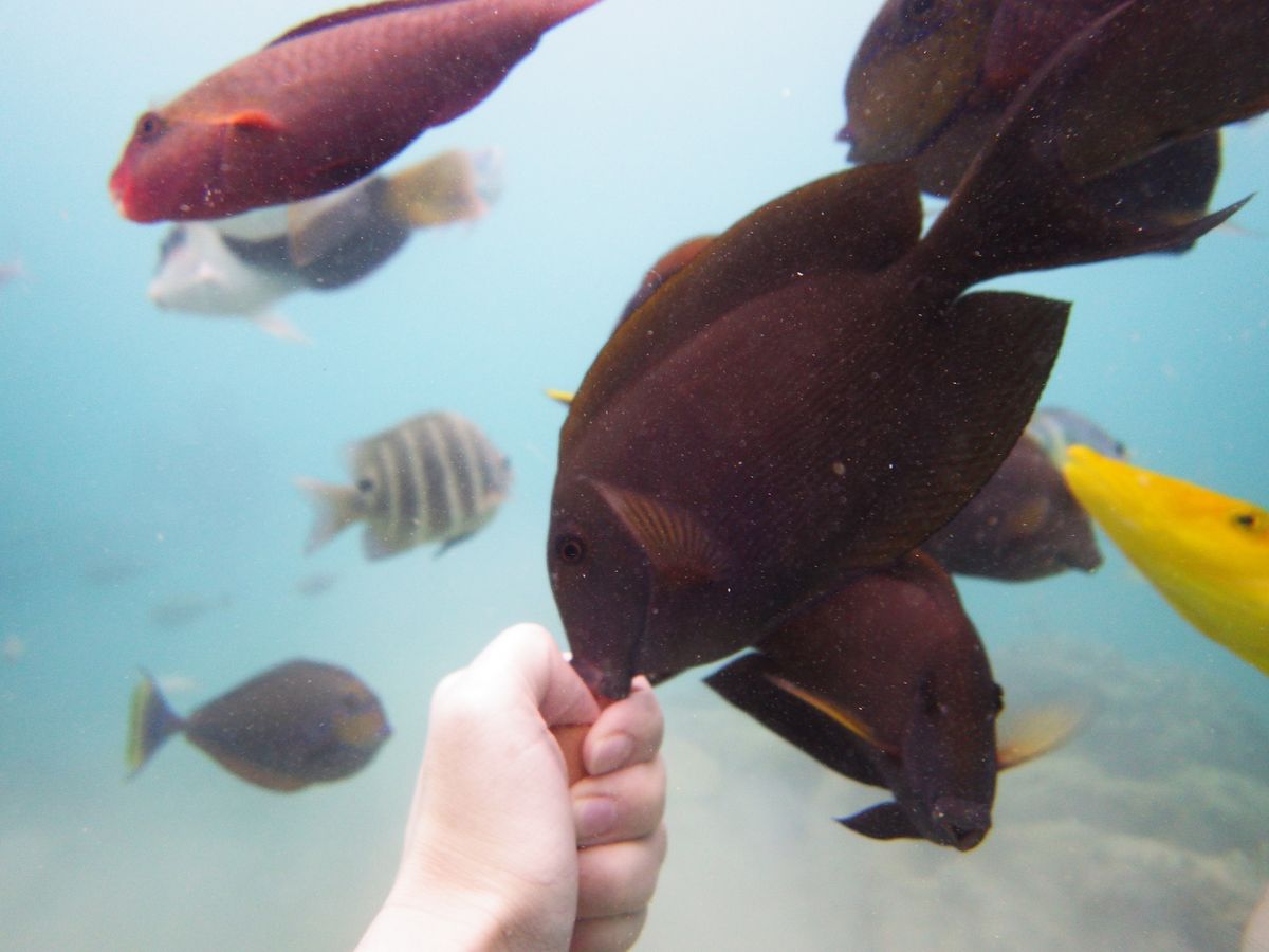 魚達は意外とアグレッシブにご飯をつっついてくるので、怖いと感じる方はいるかもしれないですが、熱帯魚に餌をあげるのは初めてでしまので、個人的にはとても楽しい時間となりました。