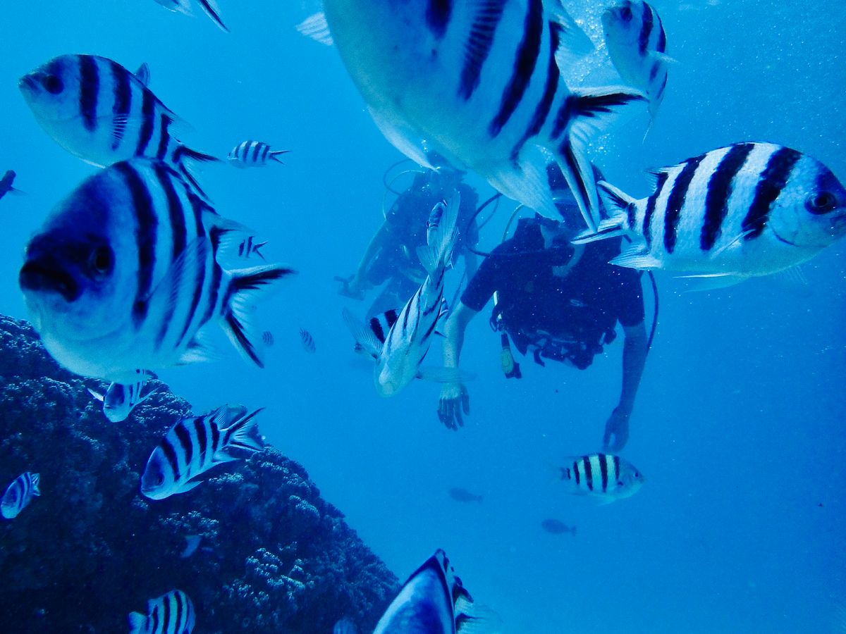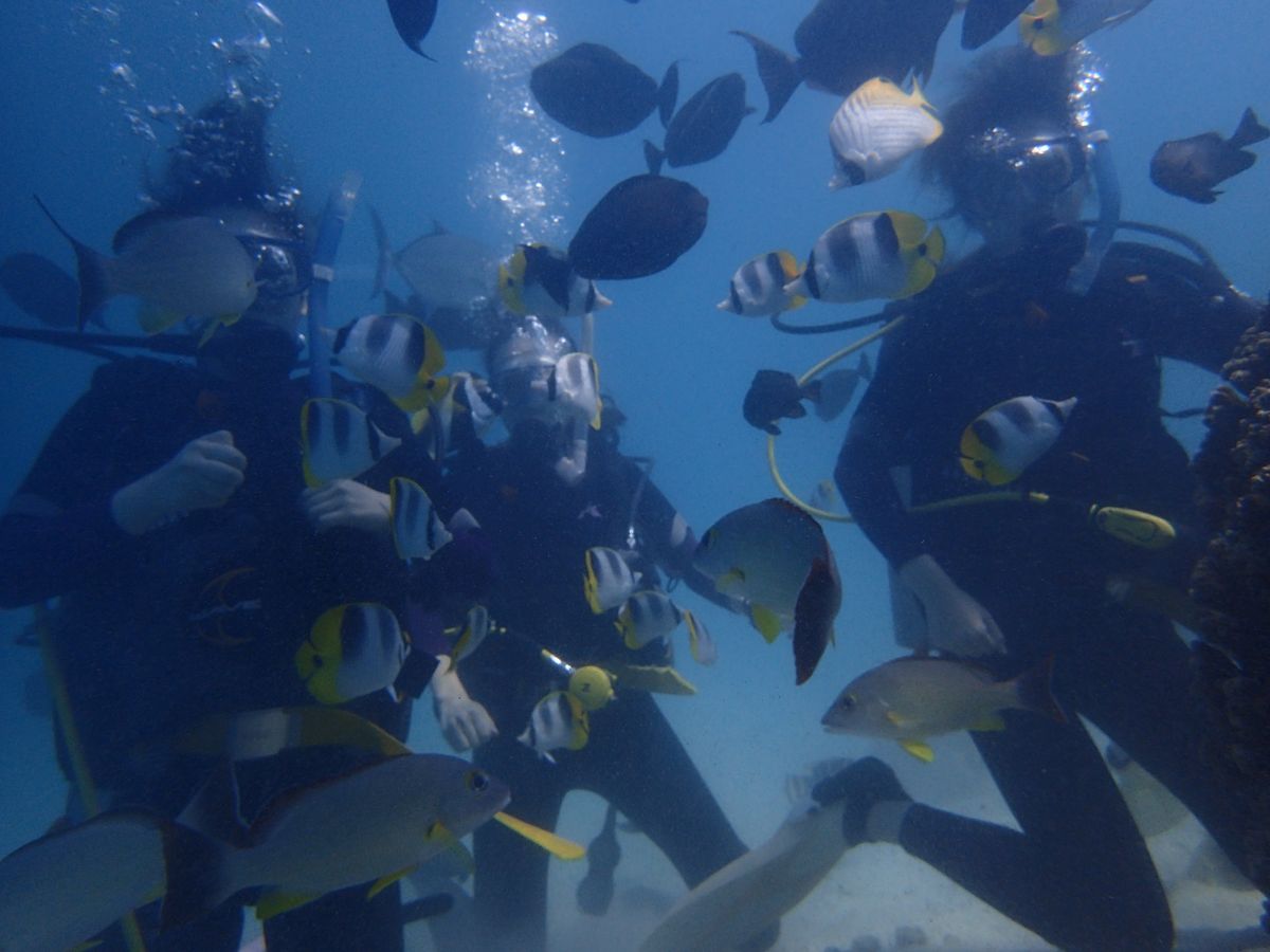 初めての家族での海外旅行で英語など話せずどうすればいいか戸惑っていましたが日本人のインストラクターや、日本語の話せる外国人のインストラクターなどいてとても安心しました。体験の説明では丁寧に教えてもらい、安心して体験することができました。潜ったらインストラクターの方から魚の餌をもらい、魚と触れ合えることができました。初心者の私も楽しくスキューバーダイビングを体験することができました!