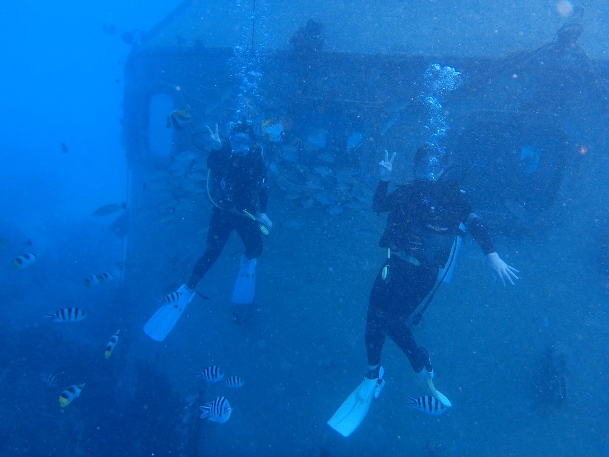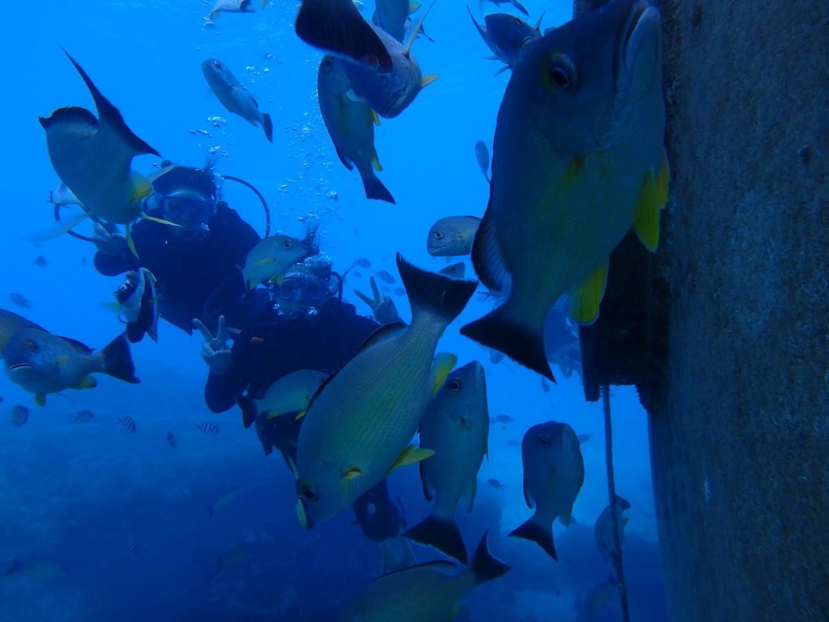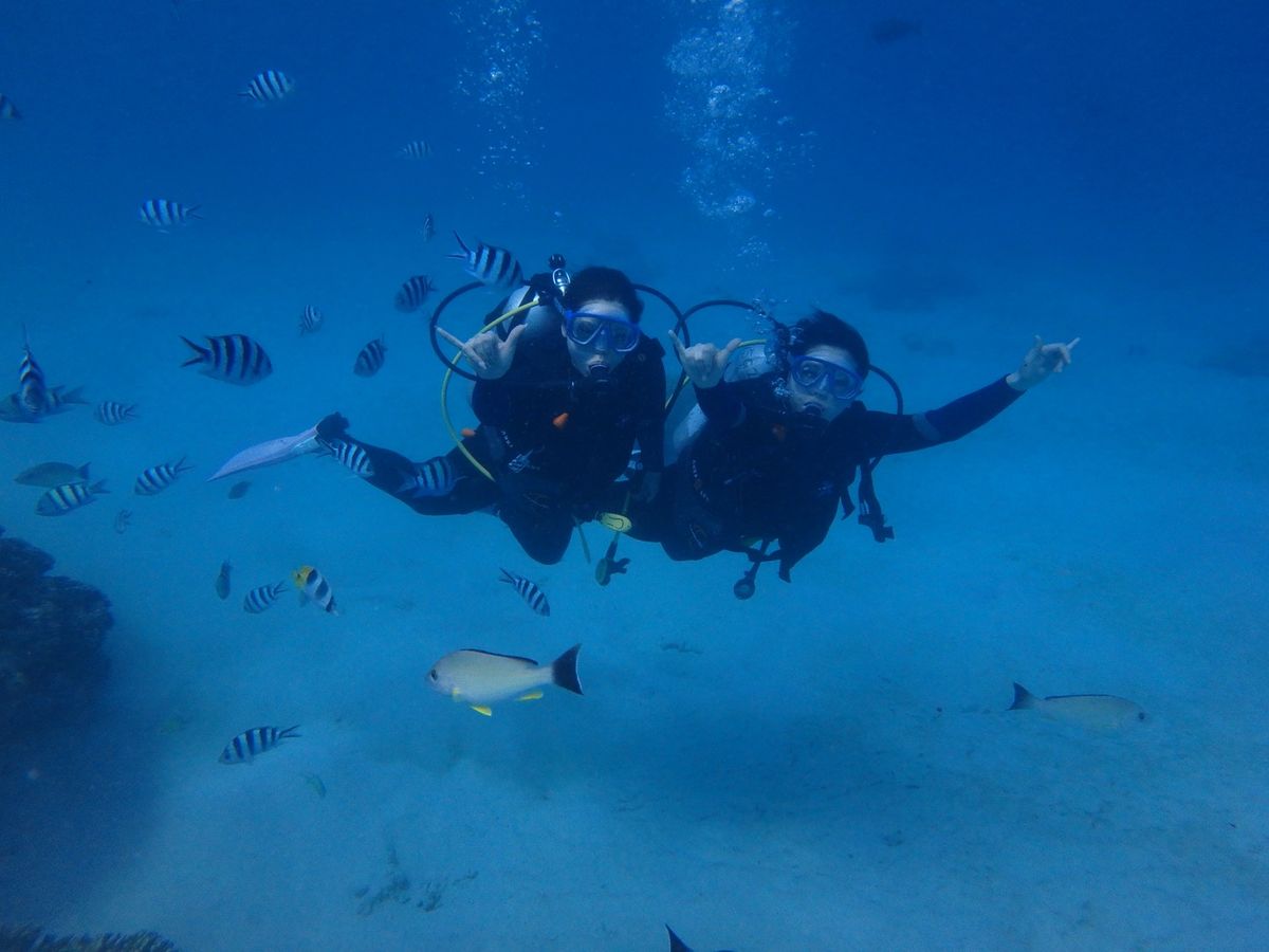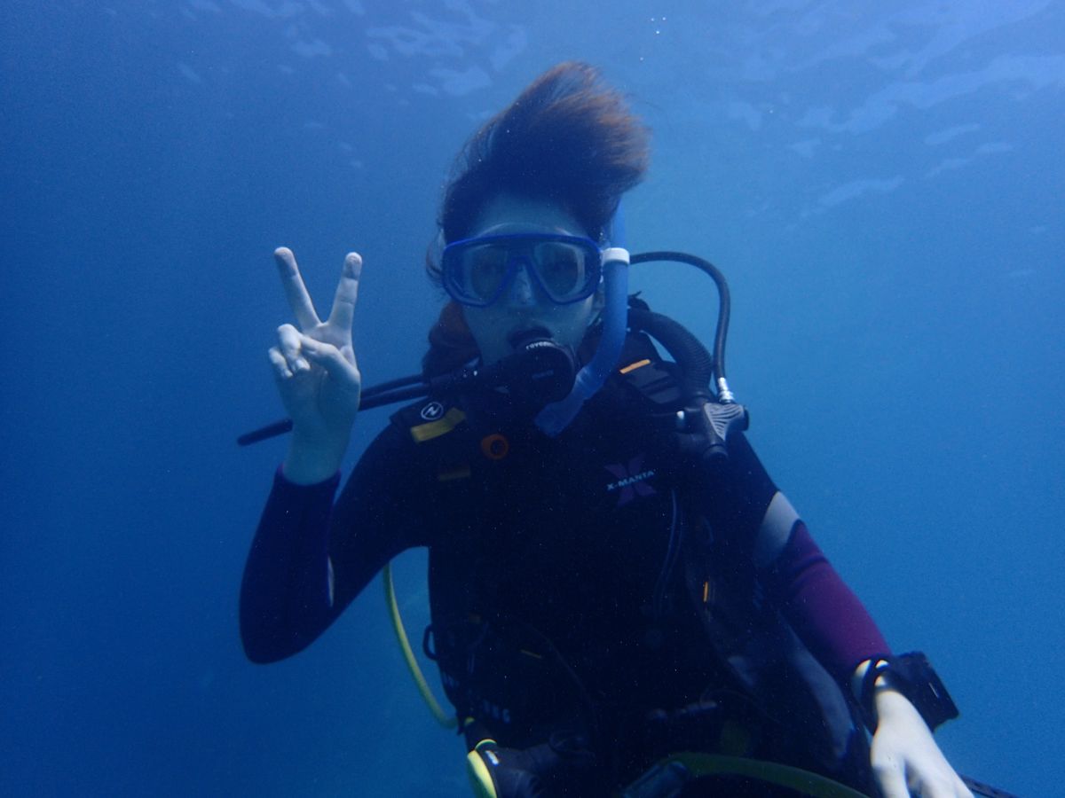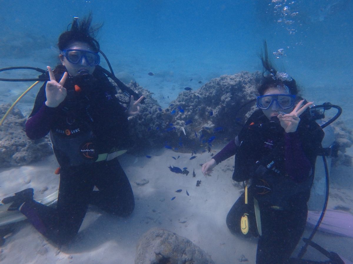 ダイビングは初めてなのでとても緊張しましたが、ダイバーの方が丁寧に教えてくださったので安心して潜ることができました。耳抜きができるかとても心配でしたが無事できて良かったです♩思っていたよりも機材が重かったですが水中に入ると重さは感じず、それよりもたくさんの魚に目がくきづけになりました♡あっという間でしたが、とてもいい思い出になりました。