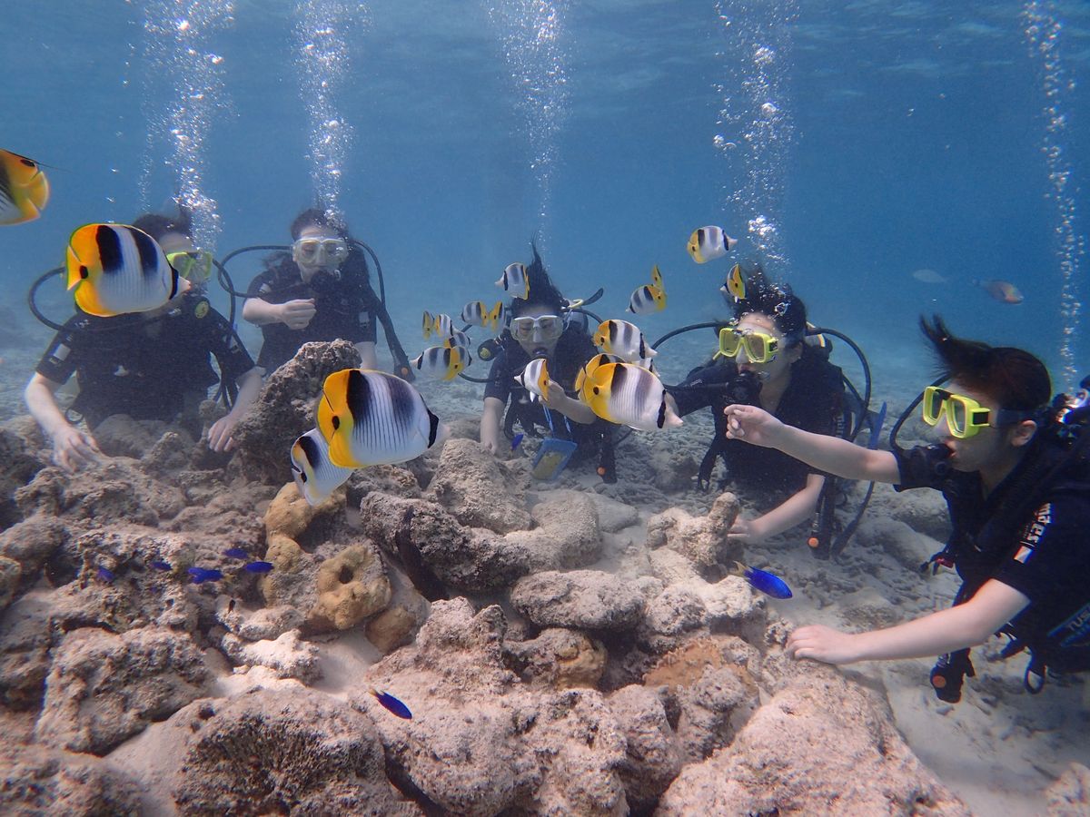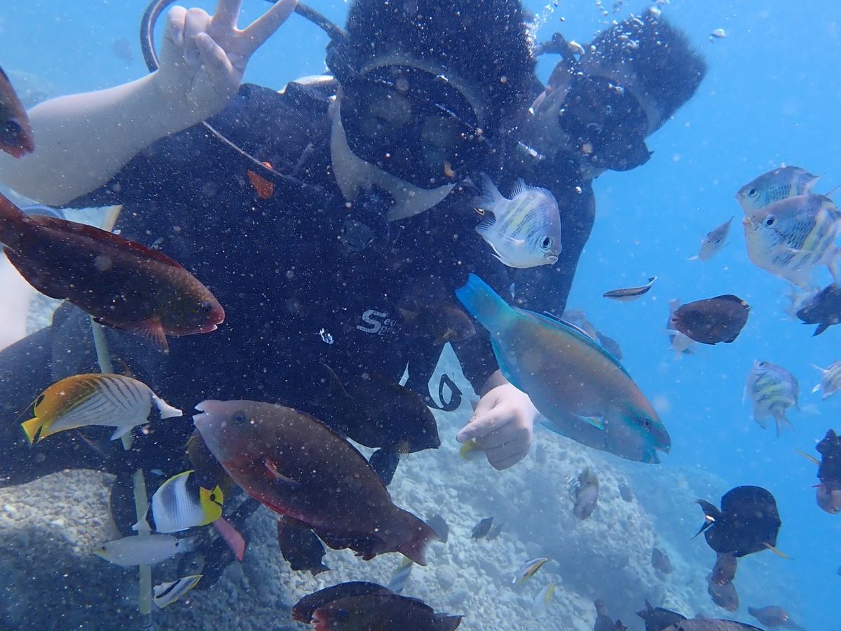 初めての体験ダイビングで不安でしたが、インストラクターの大志さんが優しく、丁寧に教えてくれたおかげで、可愛いお魚さん達に会える事が出来ました。