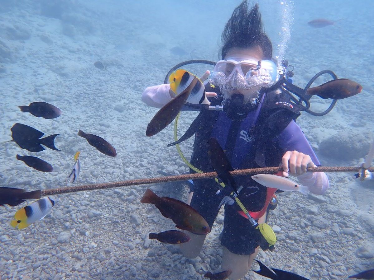 飛び込む瞬間は怖かったけれど、海の中の景色は美しくすぐに慣れました。