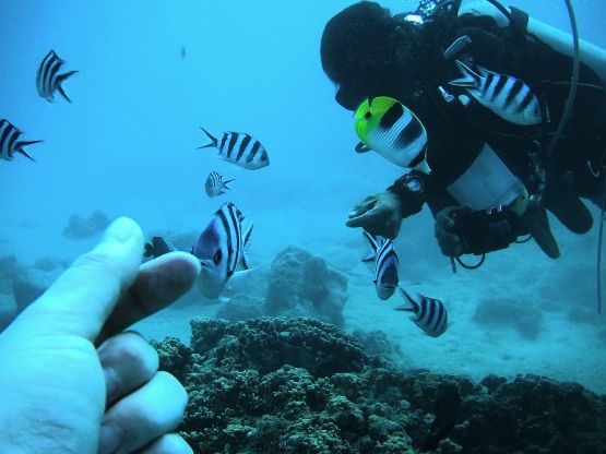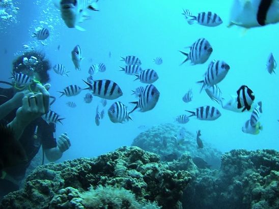 海の中では、魚に餌付けをさせてもらったり、優しくリードしてもらったり、心配してもらったり、至れり尽くせりでした。