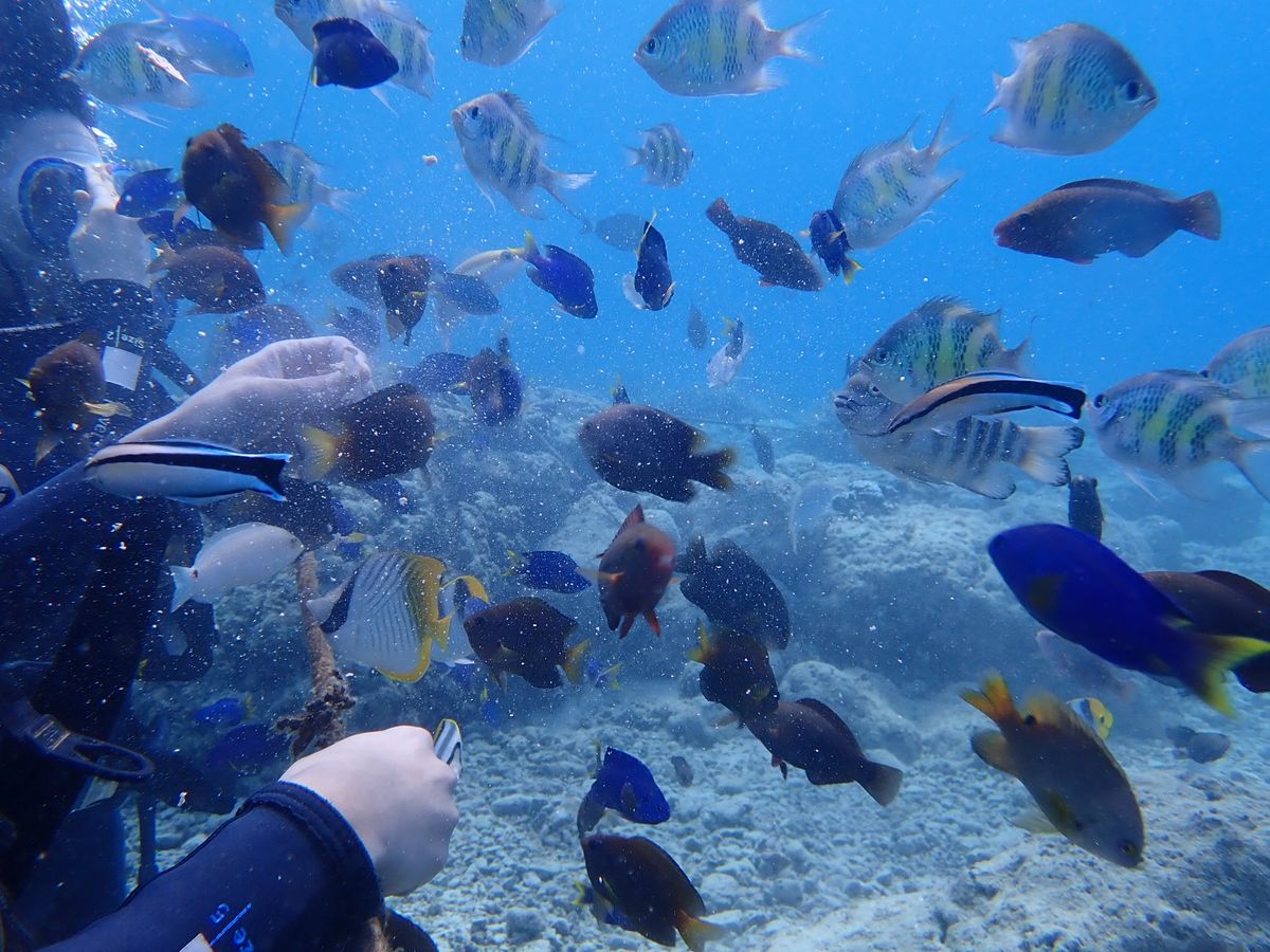 カクレクマノミに指をかじられたり、綺麗な小魚が目の前いっぱいに広がっていたり、それくらい沢山の魚の中を過ごすあっという間の時間でした。