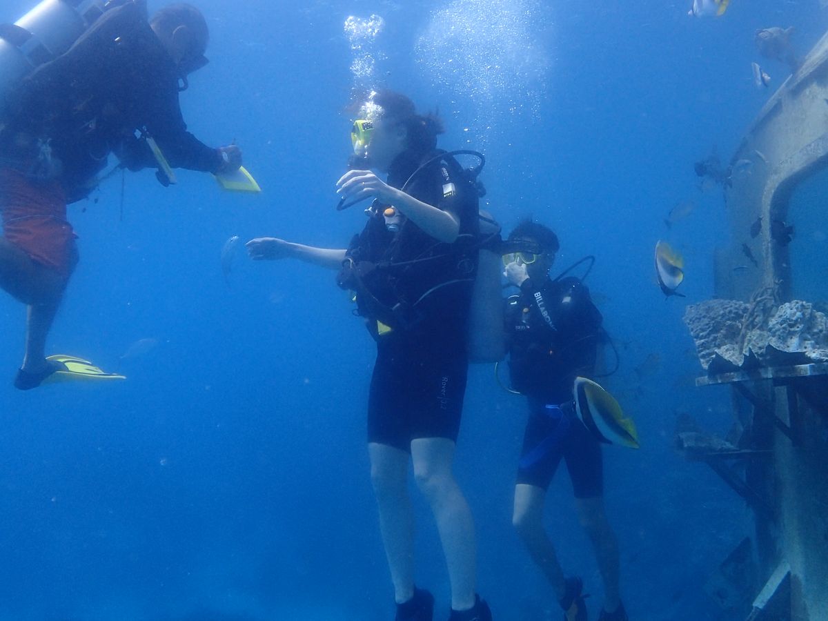 初めての海外旅行でしたが、お迎えが日本人スタッフで安心しました!ダイビングを体験しましたが、インストラクターさんも日本語ペラペラで、面白くて楽しかった!スタッフ皆さんが気にかけてくれて、温かい対応に感謝しています。初ダイビングで、初めは口呼吸が怖かったのですが、慣れてくると海の中の素晴らしさを実感しました!絶対またやります!