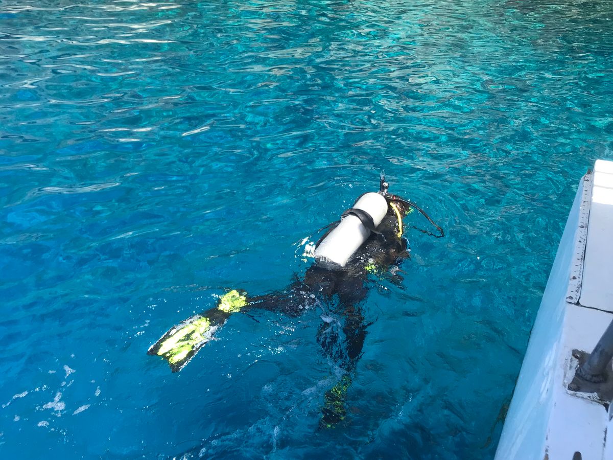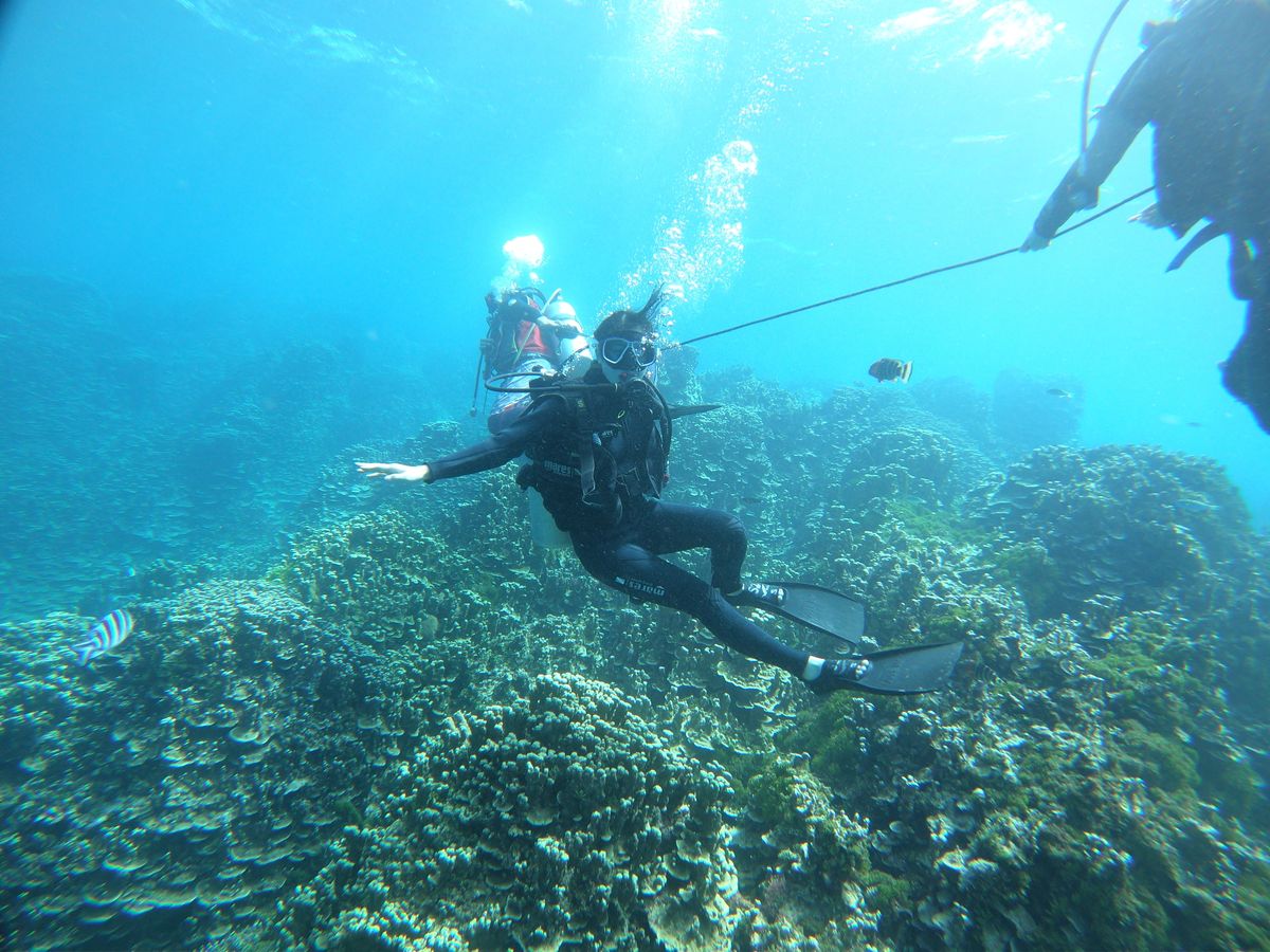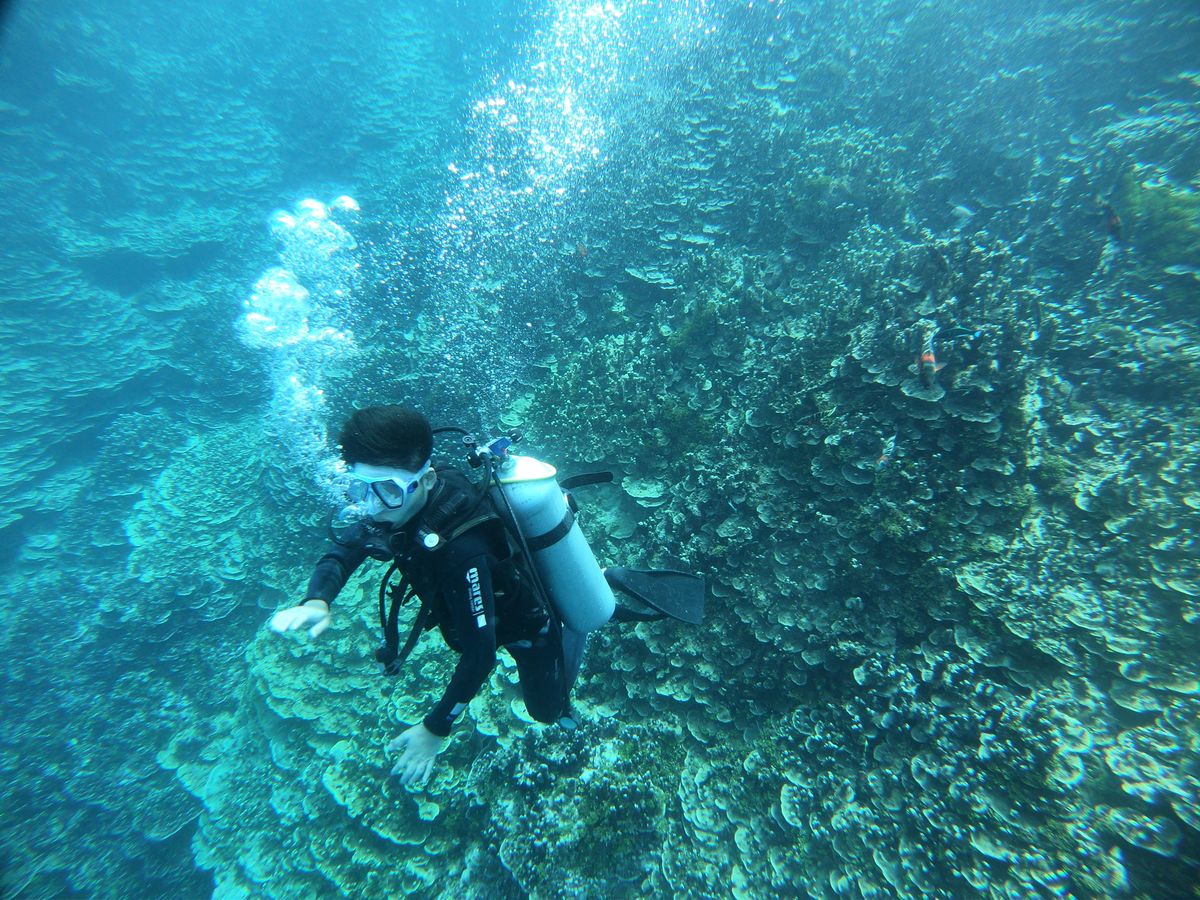 実際のダイビング開始前の練習の時は、自分自身で大丈夫かなと心配しましたが、なんとか無事に終えることが出来ました。