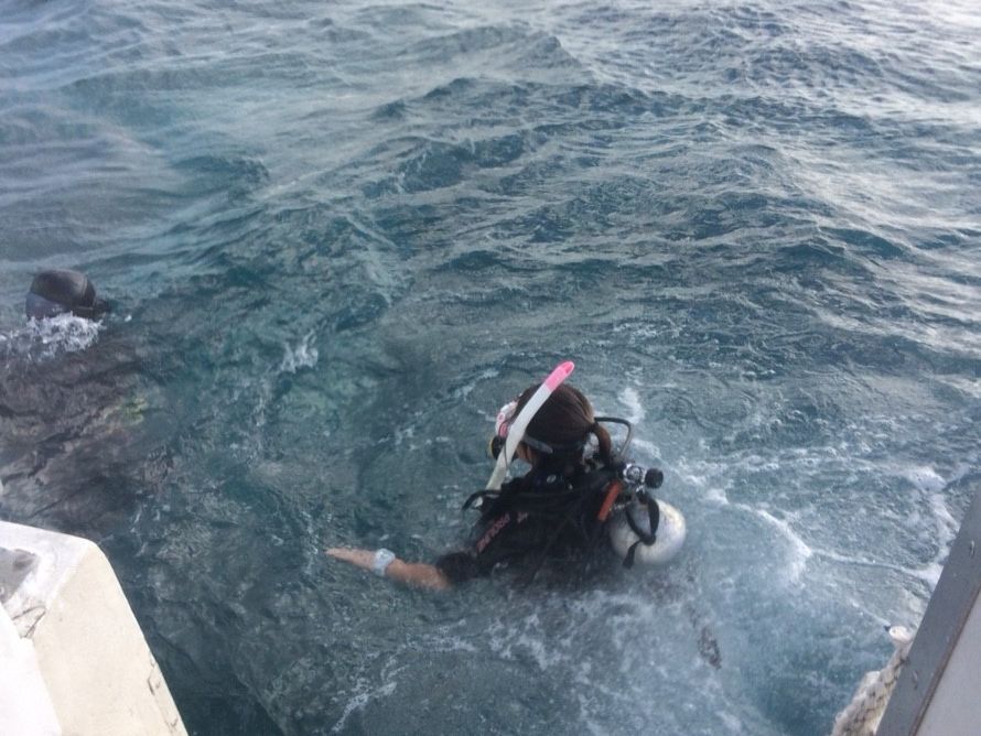 ダイビングするポイントまで着くとすぐに海に飛び込みます。