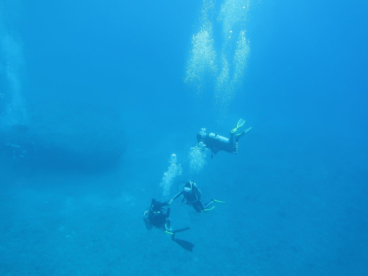 また、体験ダイビングでありがちな常にガイドさんに引っ張られてるようなものではなく、割と自由にやらせてくれます。周囲2〜3mくらいにいればいいよって感じ。